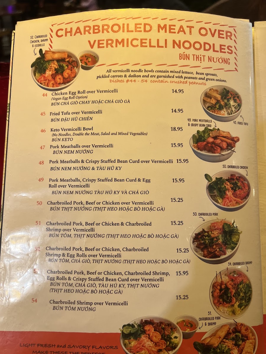 Pho Bac Hoa Viet offers a vibrant menu that showcases the rich flavors of Vietnamese and broader Southeast Asian cuisine. While known primarily for pho, regulars praise other standout dishes like their vermicelli noodle bowls, celebrated for their freshness and well-balanced seasoning. The chicken spring rolls are a must-try, boasting a smoky grilled flavor paired perfectly with an irresistible peanut sauce. For soup lovers, the wonton soup is frequently highlighted as a comforting, savory delight with hearty ingredients and authentic taste. The menu caters well to diverse dietary needs, including gluten-free and vegetarian options, all presented beautifully with thoughtful plating. Though service fluctuates, the clean, welcoming ambiance and ample indoor and outdoor seating add to the dining experience. Whether craving hearty soups, flavorful noodles, or enticing appetizers, Pho Bac Hoa Viet delivers a satisfying culinary journey into Vietnamese and Asian flavors that keeps guests returning for more.